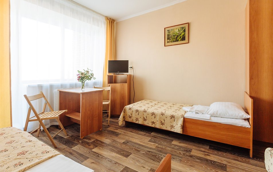 Номера №1,3 корпуса оснащены всем необходимым для комфортного проживания: мебель, ТВ, холодильник, чайник, санузел с душем. В стандартах корпуса №2 не предусмотрены чайники и холодильники. На этажах установлены кулеры с водой, холодильник - на 1 этаже у ресепшн. Балконами оборудованы корпуса №1,2 и частично корпус № 3. В корпусе № 1 установлен банкомат.