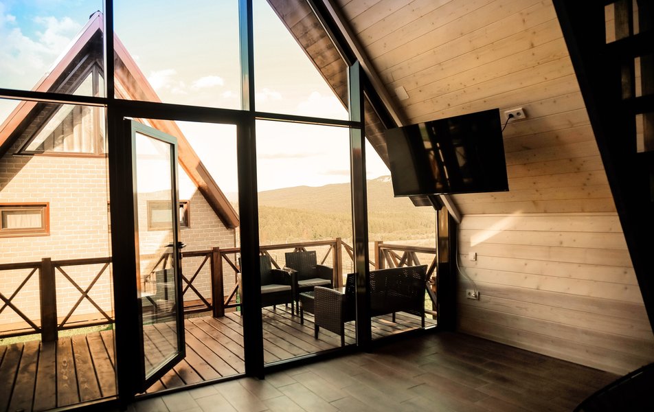 Комплекс, занимающий закрытую территорию в окружении Таганайского пейзажа, включает в себя трехэтажный гостиничный корпус, двухэтажный хостел, двухуровневые шале, двухэтажные таунхаусы, коттедж Чикаго с оригинальным экстерьером, домики Сказка, Берлога и Замок. Такие варианты размещения подойдут как для пары, так и для семей или больших компаний. Внутри – уютные интерьеры с элементами эко-стиля, во всех номерах предусмотрен персональный санузел, есть вся необходимая мебель. В домиках, шале, таунхаусах и коттеджах оборудованы кухни и барбекю зоны.