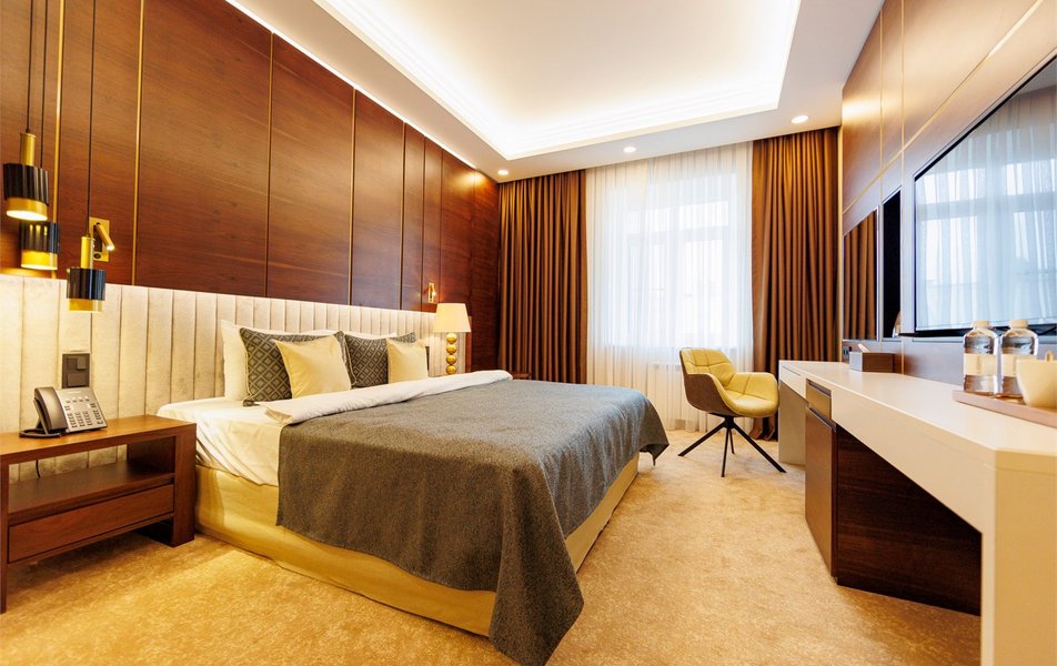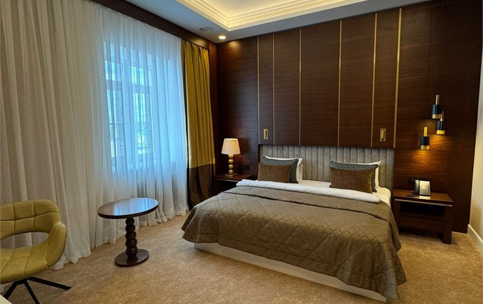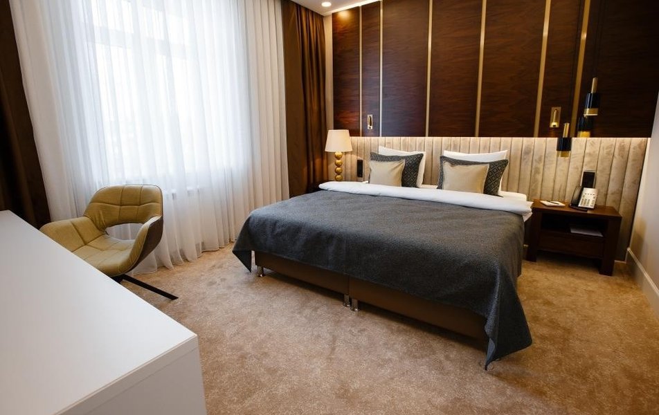 Отель располагается в историческом 5-этажном здании. Просторные номера с французскими окнами оформлены в постельных тонах. В них есть необходимая мебель для отдыха и хранения личных вещей, телевизор, телефон, кондиционер, работает Wi-Fi. Санузел с ванной или душем, гостям предоставляются косметические принадлежности.