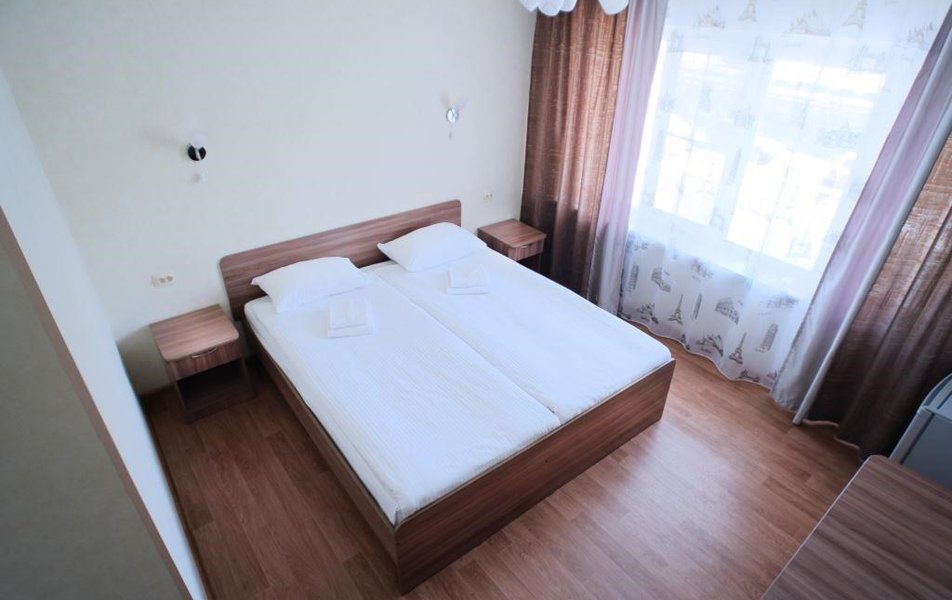 Восьмиэтажный корпус отеля разместился на пересечении улицы Синельникова с главной магистралью района — улицей Карла Маркса. Жилой фонд отеля состоит из 195 номеров разного уровня комфорта — от Эконома до Люкса. Светлые просторные номера оснащены санузлом с душем или ванной. В каждой комнате есть удобный спальный гарнитур, телевизор и мини-холодильник.