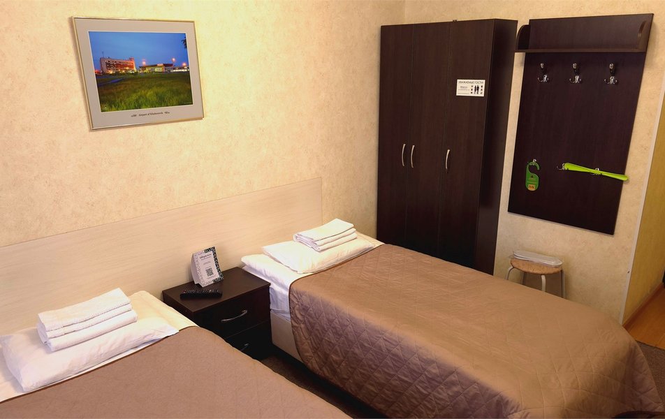 Поездом до ж/д вокзала г. Хабаровск, далее пройти 280 м до остановки «Железнодорожный вокзал», далее на трамвае №5 до остановки «Брестская улица», далее 720 м до отеля.
