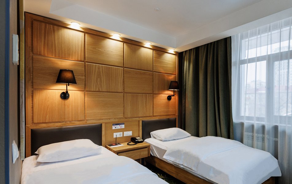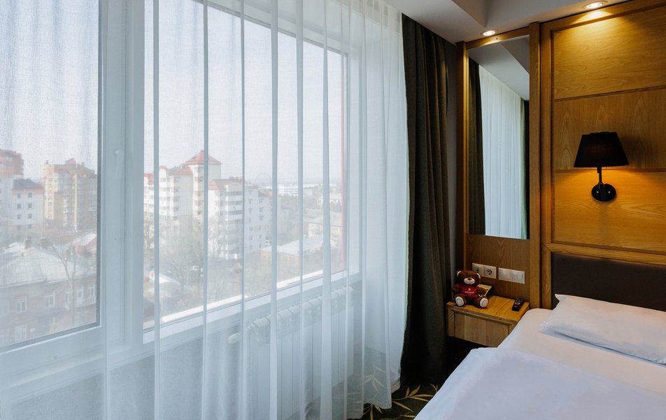 Отель расположен в уютном центре Хабаровска рядом с ключевыми достопримечательностями: улица Муравьева-Амурского, Комсомольская площадь, набережная Адмирала Невельского, Амурский Утёс. Из окон открывается великолепный вид на реку Амур и городской пейзаж.