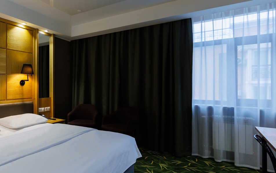 В отеле 97 номеров категорий: «Стандарт», «Супериор», «Делюкс», «Люкс», «Люкс Клубный» и «Люкс Клубный с сауной». В каждом номере есть выделенное рабочее место, чайная станция, телевизор, кондиционер, сейф, утюг и гладильная доска, туалетные принадлежности и фен.