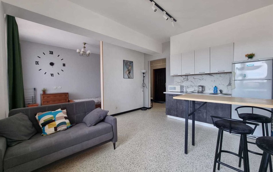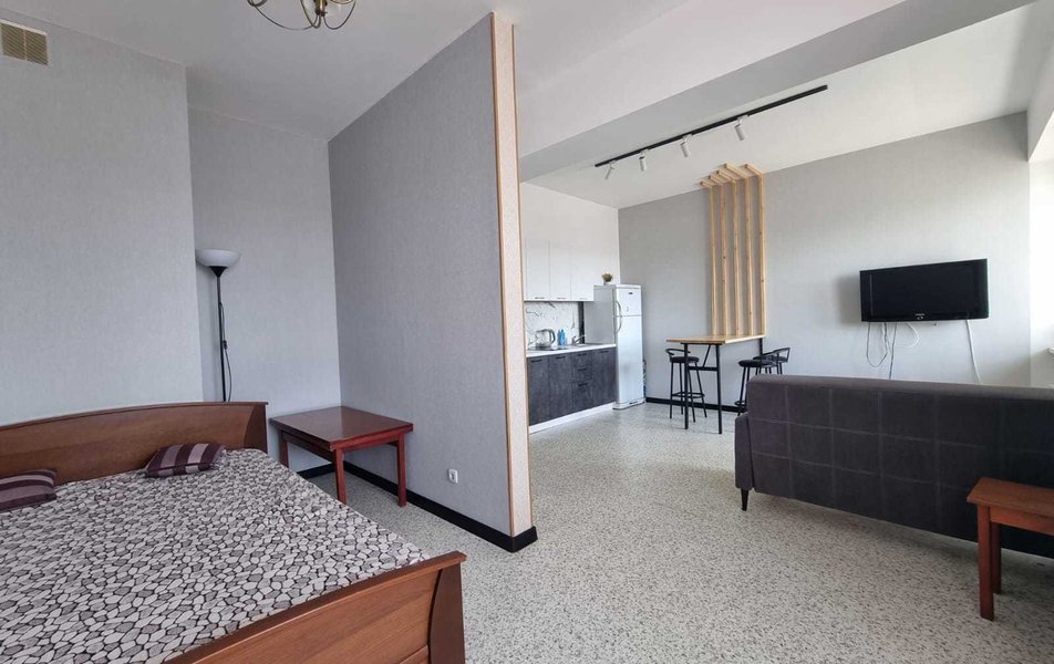 Просторные апартаменты общей площадью 42 квадратных метра идеально подходят для комфортного размещения до трёх гостей. Интерьер продуман до мелочей и предлагает гостям всё необходимое для полноценного отдыха: оборудованная кухня с современной бытовой техникой позволит самостоятельно приготовить любимые блюда, а наличие стиральной машины облегчит уход за вещами. Дополнительный комфорт обеспечивают фен, утюг и полный комплект постельных принадлежностей, полотенец и гигиенических средств.