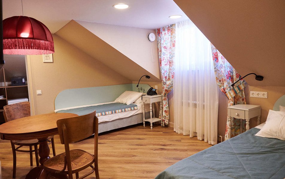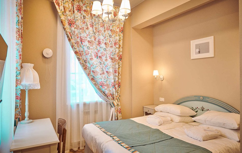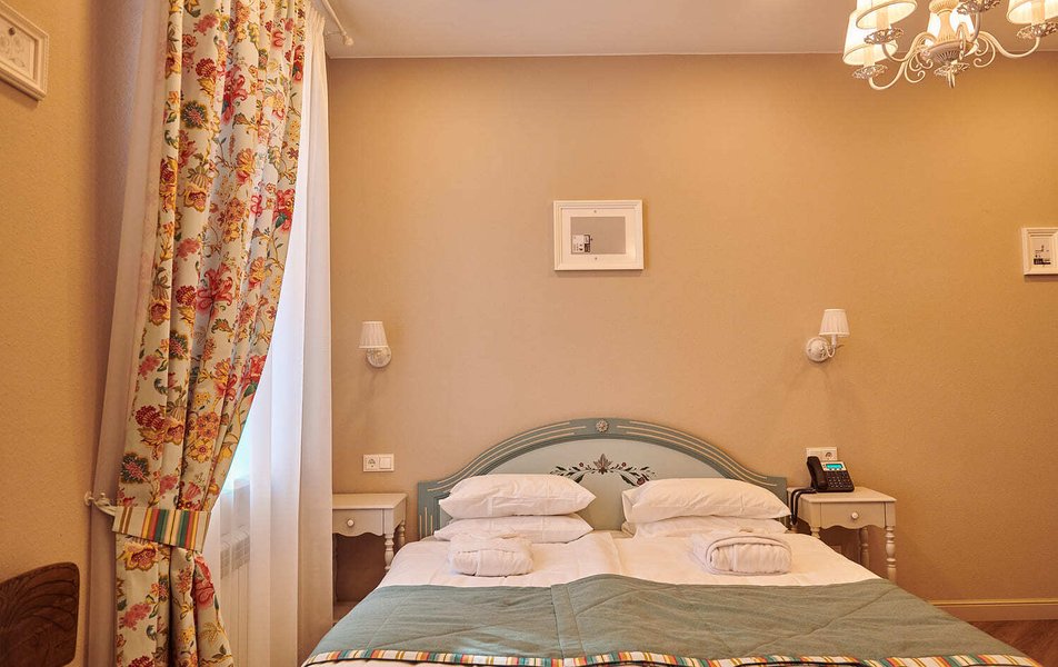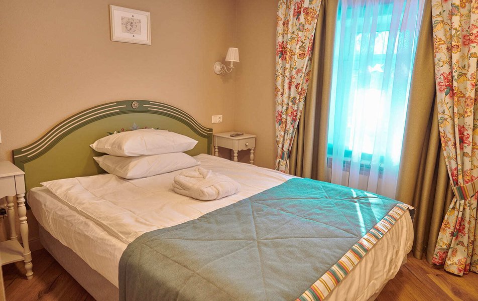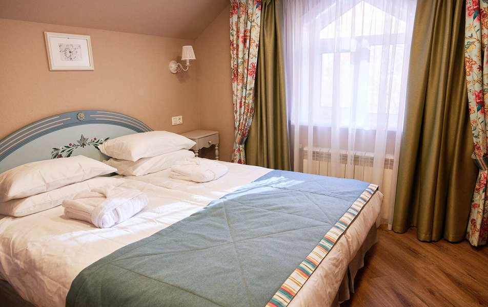 Для гостей подготовлены комфортабельные номера. Удобные кровати с плотными шторами, настенные бра, сейфы и вместительные шкафы создают ощущение уюта и покоя. В каждой комнате есть чайная станция и мини-холодильник, а санузел укомплектован всем необходимым. По утрам здесь подают континентальный завтрак, а в ресторане можно отведать сытные и вкусные блюда традиционной русской кухни.