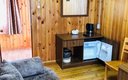 Отель представляет собой большой современный комплекс, включающий в себя зимние коттеджи и летние брусовые домики. В них есть все необходимое для комфортного проживания. Внутренний интерьер номеров выполнен из натурального дерева. К услугам гостей телевизор, мини-холодильник, чайник. Санузел индивидуальный, с душем, туалетными принадлежностями и полотенцами.
