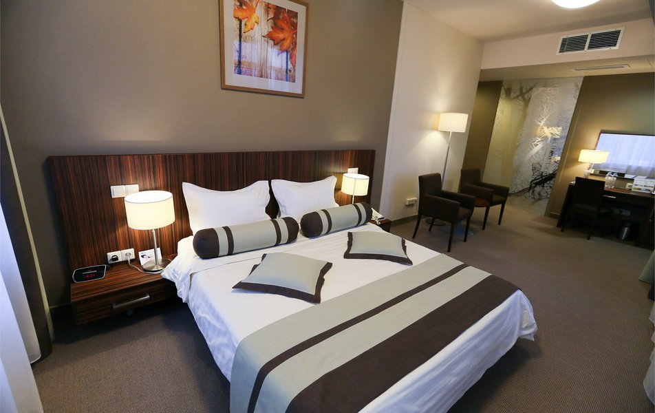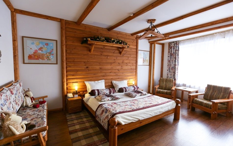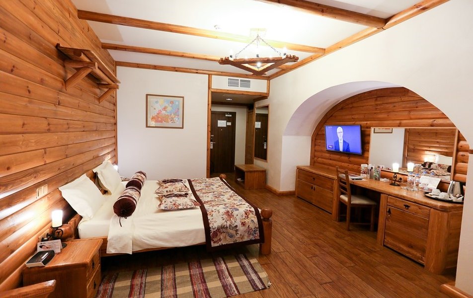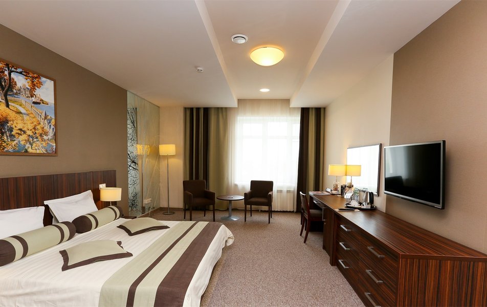 Номера хорошо меблированы, оснащены бытовой техникой, интерьеры выдержаны в классической цветовой гамме. В каждом есть ванная комната с душевой кабиной, а в номерах Люкс — собственная сауна.