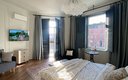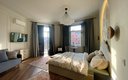 Интерьер апартаментов выполнен в стиле буржуазной роскоши и современного вкуса. В центре внимания — невероятно комфортная кровать, над которой расположилось уникальное панно авторской ручной работы, задающее тон всему пространству. Жемчужиной этих апартаментов становится красивейший балкон с ажурной ковкой: выходя на него, гости открывают для себя очаровательный вид на площадь и башню, ощущая себя частью живой истории. Внутри продумано всё для беззаботного отдыха: полноценная кухня с техникой и посудой, современная ванная комната с принадлежностями, чистым бельём и полотенцами, а также Wi-Fi и телевизор для приятного вечера.