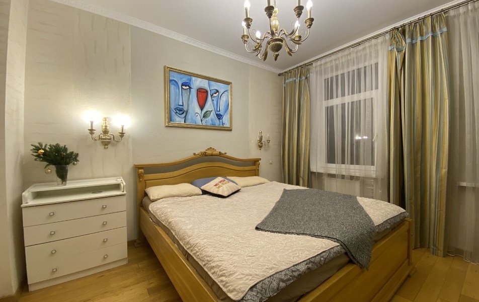 Просторные апартаменты площадью 90 м² продуманы до мелочей для полноценного отдыха большой компании или семьи до шести человек. В отдельной спальне установлена огромная двуспальная кровать (230х230 см), а продуманная система блэкаут-штор обеспечит крепкий сон в любое время суток. Для юных путешественников оборудована детская с односпальной кроватью и раскладным диваном, а также предоставляется детская кроватка. В гостиной гостей ждёт уютная зона отдыха с телевизором и дополнительным раскладным диваном. Кухня полностью готова к приготовлению любых блюд: газовая плита, духовка, микроволновая печь, холодильник, чайник и полный набор посуды. В ванной комнате — большая ванна, стиральная машина, фен и косметические принадлежности для гостей. Главная же жемчужина этих апартаментов — собственная баня, расположенная прямо внутри, где можно расслабиться после прогулок по историческому городу (растопка на дровах предоставляется по предварительной договорённости).