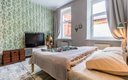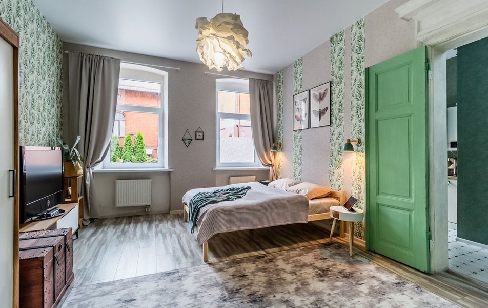 Внутри апартаментов царит особая атмосфера, где дизайнерский подход сочетается с бережно сохранёнными деталями прошлого. Пространство украшает старинная печь, а из окон открываются виды, от которых невозможно оторваться, устроившись на уютном диванчике. Здесь продумано всё для комфортного проживания: от полного комплекта техники и посуды на кухне до удобной кровати, чистого белья и полотенец. Гости найдут всё необходимое, чтобы чувствовать себя как дома.