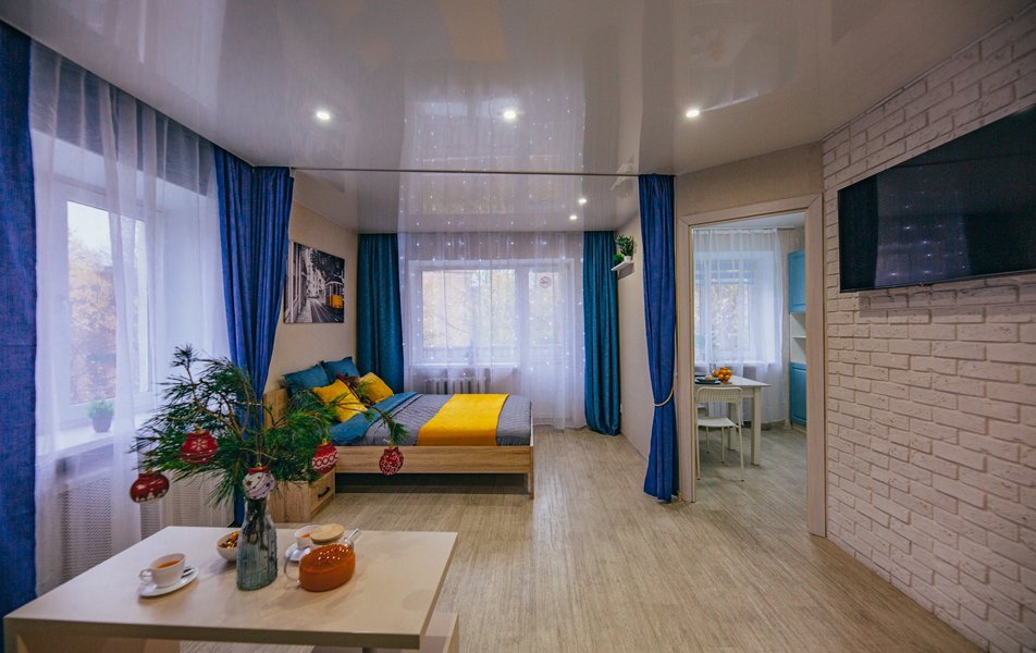 Апартаменты представляют собой полностью оборудованное жилье с продуманной планировкой. Внутри царит атмосфера тепла и уюта: интерьер выполнен в спокойных светлых тонах, создающих ощущение простора и домашнего комфорта.