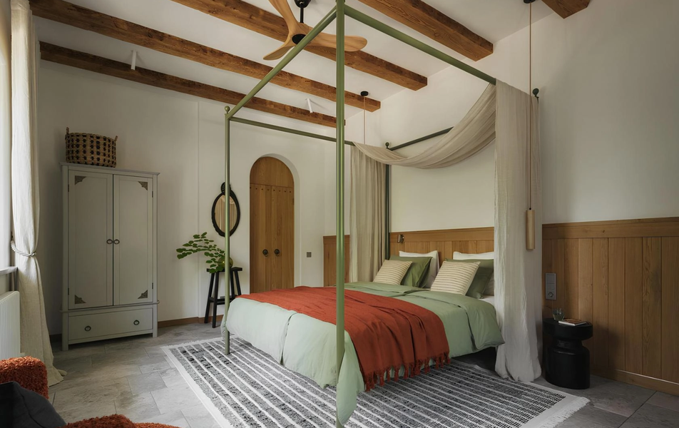 Просторное и светлое помещение с высокими потолками оформлено в авторском стиле: натуральные материалы, мебель из локального дуба и спокойные природные оттенки создают ощущение уюта и гармонии. Гостей встречает очаровательный балкон с видом на парк, большая кровать с балдахином и современная кухня с островом, оснащенная всей необходимой техникой. Продуманный отдых дополняет коллекция книг и «библиотека чая». Аккуратный и ухоженный подъезд исторического дома подчеркивает его особый характер, и, чтобы сохранить эту уникальную атмосферу, гостей просят соблюдать тишину после 22:00.