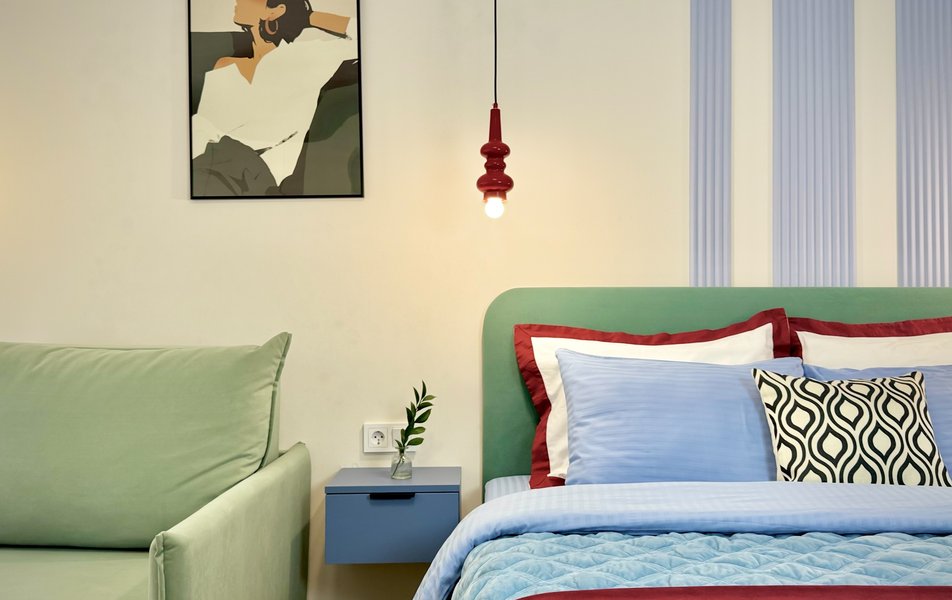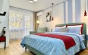 Просторные двухкомнатные апартаменты с изолированными комнатами продуманы до мелочей для проживания компании до шести человек. В первой комнате установлена двуспальная кровать (160х200 см) и удобное односпальное кресло-кровать, во второй — односпальная кровать и вместительный двуспальный диван. Окна выходят в зелёный двор, гарантируя тишину и спокойствие. Гостиная оснащена современным телевизором и беспроводным интернетом, а кондиционер поддерживает комфортную температуру в любое время года. Кухня полностью готова к приготовлению блюд: имеется вся необходимая техника и посуда, а для приятного начала отдыха предусмотрены чай и кофе. Ванная комната укомплектована свежими полотенцами, комплектами постельного белья и стартовым набором средств гигиены.