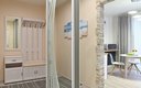 Пространство полностью готово к комфортному проживанию. В апартаментах оборудована современная кухня с необходимой техникой, посудой и принадлежностями для приготовления еды. Гостей ждут удобные спальные места, в комнате работает кондиционер. Ванная комната оснащена стиральной машиной с функцией сушки, феном и гладильными принадлежностями. Продуманы и приятные детали: предоставляются качественное постельное белье, полотенца, стартовый набор средств гигиены, а также чай и кофе. Для досуга есть телевизор и высокоскоростной Wi-Fi на всей площади.
