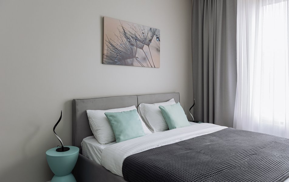 Пространство рассчитано на комфортное проживание трёх человек: здесь есть удобная двуспальная кровать с качественным матрасом и просторное раскладное кресло. Изюминкой служит балкон с большими панорамными окнами, выходящий в тихий зелёный двор. Внутри — водонагреватель, холодильник, кофемашина с натуральным кофе, беспроводной интернет и Smart TV. В кухонной зоне установлены плита, микроволновая печь, чайник, а также полный набор посуды, сковородки, кастрюли, чай, кофе, соль и сахар. В ванной комнате — ванна, тропический душ, стиральная машина, фен, а также гигиенические принадлежности: зубные щётки, ватные диски и палочки, морская соль, гель для душа, шампунь и мыло. Гостей ждут белоснежное постельное бельё и комплект полотенец. Для семей с детьми по запросу предоставляется кроватка-манеж, стульчик для кормления и коляска-трость.