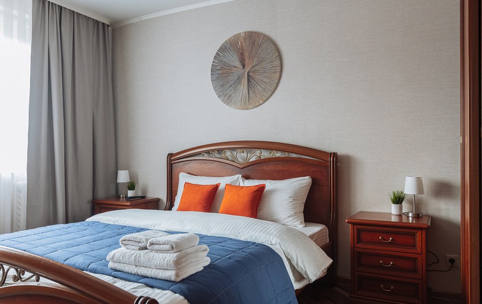 Пространство рассчитано на размещение четырех гостей. В распоряжении отдыхающих — удобная двуспальная кровать с качественным матрасом и просторный диван, а также вместительный шкаф для хранения вещей. На кухне установлена плита, микроволновая печь, чайник и холодильник; предусмотрен полный набор посуды, кастрюли и сковородки для приготовления еды. Приятным дополнением станет кофемашина с запасом натурального кофе, а также чай, сахар и соль. В ванной комнате есть ванна, душ, стиральная машина и фен. Для заботы о комфорте гостей предусмотрены не только белоснежное постельное белье и полотенца, но и средства гигиены: гель для душа, шампунь, мыло, зубные щетки, ватные диски и палочки, а также морская соль. В апартаментах работает быстрый Wi-Fi и установлен Smart TV.
