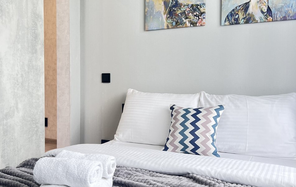 Апартаменты расположились в четырехэтажном жилом доме в тихом районе. К услугам гостей однокомнатный 2-местный номер с балконом. В апартаментах светлый интерьер, есть собственная кухня с газовой плитой, электрочайником, среди прочего – стиральная машина, телевизор-ЖК и сеть wi-fi, в санузле – ванна и косметические принадлежности для гостей.