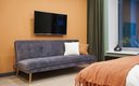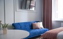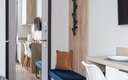 Апартаменты расположились в 8-этажном здании с лифтом. В оформлении использованы элементы минималистичного стиля, что в сочетании с удобной мебелью и современной техникой делает отдых особенно комфортным. В ванной есть полотенца и стиральная машина. Также к услугам гостей телевизор с плоским экраном, гладильные принадлежности, Wi-Fi. Мини-кухня оснащена плитой, холодильником, кофемашиной, микроволновой печью и необходимой мебелью. Личный транспорт можно оставить на парковке возле дома. Для маленьких постояльцев на свежем воздухе оборудована игровая площадка.