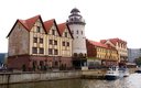 Самолетом до аэропорта г. Калининграда, далее на автобусе 224э до остановки гостиница Турист, далее на автобусе 21 до остановки Набережная ветеранов, далее пешком 145 м.