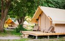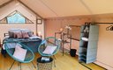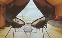 К размещению гостей предлагаются 12 комфортабельных сафари-тентов. Внутри установлены удобные кровати для сна, места для хранения личных вещей, зеркало. Предусмотрена индивидуальная система обогрева. Полноценный санузел оснащен современной сантехникой. Возле каждого тента есть уютная терраса. Работает Wi-Fi.