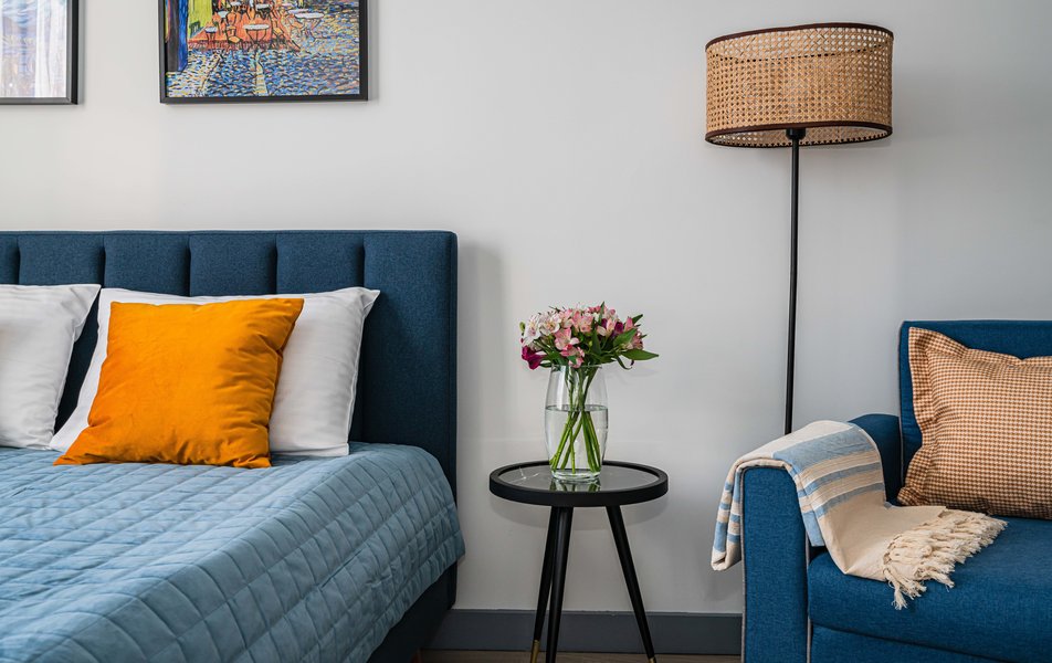 Просторный формат евро-двушки продуман для комфорта компании до пяти человек. В отдельной спальне установлена кровать 160×200, ещё одна такая же ждёт гостей в кухне-гостиной, а дополнительное место организовано на удобном кресле-кровати 90×180. В распоряжении гостей полноценная кухня с посудомоечной машиной, кофеваркой, микроволновой печью и всей необходимой техникой. В санузле с душевой кабиной есть стиральная машина и фен, для каждого гостя приготовлены свежие полотенца. За развлечения и связь отвечают смарт-телевизор и высокоскоростной Wi-Fi, а поддерживать комфортную температуру поможет кондиционер в гостиной. Окна выходят в тихий двор, и для полного уюта предусмотрены сушилка для белья и отпариватель.