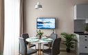 Апартаменты располагаются в 5-этажном здании с лифтом. В комнатах для отдыхающих установлена комфортабельная мягкая мебель, шкаф, работает высокоскоростной интернет, есть телевизор, стиральная машина. Санузел с ванной или душем. Гостям предоставляются туалетные принадлежности, мягкие полотенца, есть фен, чтобы высушить волосы.