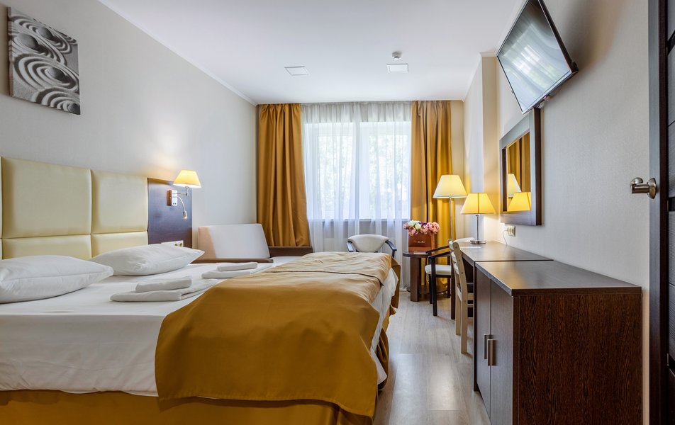 Апартаменты, занимающие 2, 3 и 4 этажи 5-ти этажного современного здания, оснащены комфортабельным мебельным гарнитуром, необходимой техникой – телевизором, стиральной машиной, утюгом, вентилятором, санузлом с душевой кабиной, оборудованной кухней и лоджией.