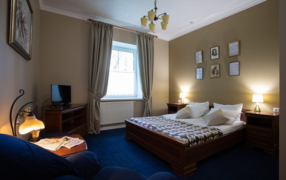 Четырехэтажное здание гостиницы с мансардой, без лифта. Способно одновременно принять до 26 человек. Отдыхающим предлагаются двухместные номера с ванной или душем категории Стандарт, Полулюкс и Люкс. В каждом номере есть мини-холодильнк, телевизор и косметические принадлежности.