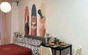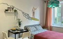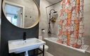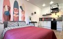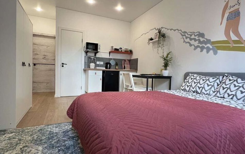 Внутри гостей ждет продуманное до мелочей пространство в современном дизайнерском стиле. В распоряжении гостей удобная кровать с прикроватными тумбочками и вместительный шкаф для вещей. Кухонная зона полностью готова к приготовлению еды: есть холодильник, плита, микроволновая печь и полный набор посуды. В ванной комнате гостей ожидают освежающий душ, чистые полотенца и базовые туалетные принадлежности. Для комфортного проживания предусмотрены кондиционер, стиральная машина, телевизор с плоским экраном и высокоскоростной Wi-Fi.