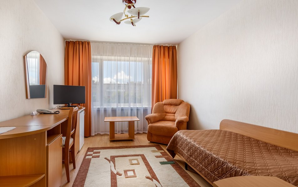 Проживание здесь — это тихий уют и современный комфорт. Каждый номер оснащен функциональной мебелью, холодильником и плазменной панелью для отдыха. Личная ванная комната с душевой кабиной и набором косметических принадлежностей добавляет приятных штрихов к ежедневному пребыванию.