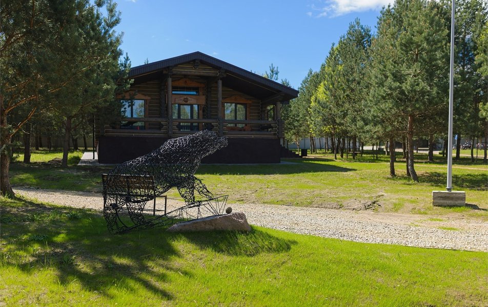 Самолетом до аэропорта г. Калуга, далее на автобусе №72 до остановки «Дубрава», далее на автобусе №146 двигаться до остановки «Станция Калуга-1», далее на автобусе №122 до остановки «Мужачи-2», далее пешком 4 км до парк-отеля.