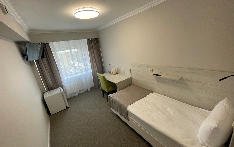 5-ти этажное здание отеля, оснащенное лифтом, рассчитано на единовременное размещение до 140 человек. Гостям предлагаются 1-но местные и 2-х местные номера категории Бизнес, Стандарт и Эконом. В номерах есть мебельный гарнитур, холодильник, телевизор, санузел с ванной или душевой.