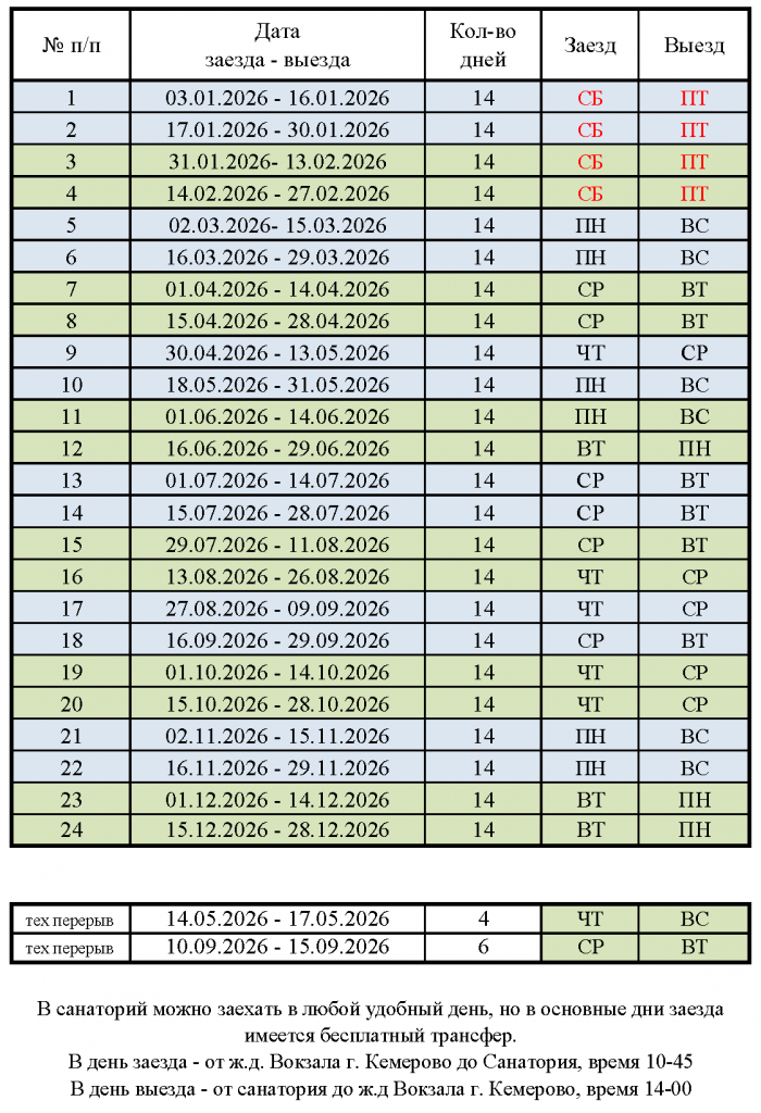 Акция РАННЕЕ БРОНИРОВАНИЕ Скидка -10% при бронировании за 90 дней заезда на Лечебные путевки от 14 дней. Бронирование с 01.03.2026 по 31.05.2026 на период проживания: с 01.06. по 31.08.26 с 01.07.2026 по 30.09.2026 на период проживания:02.11.по 28.12.26