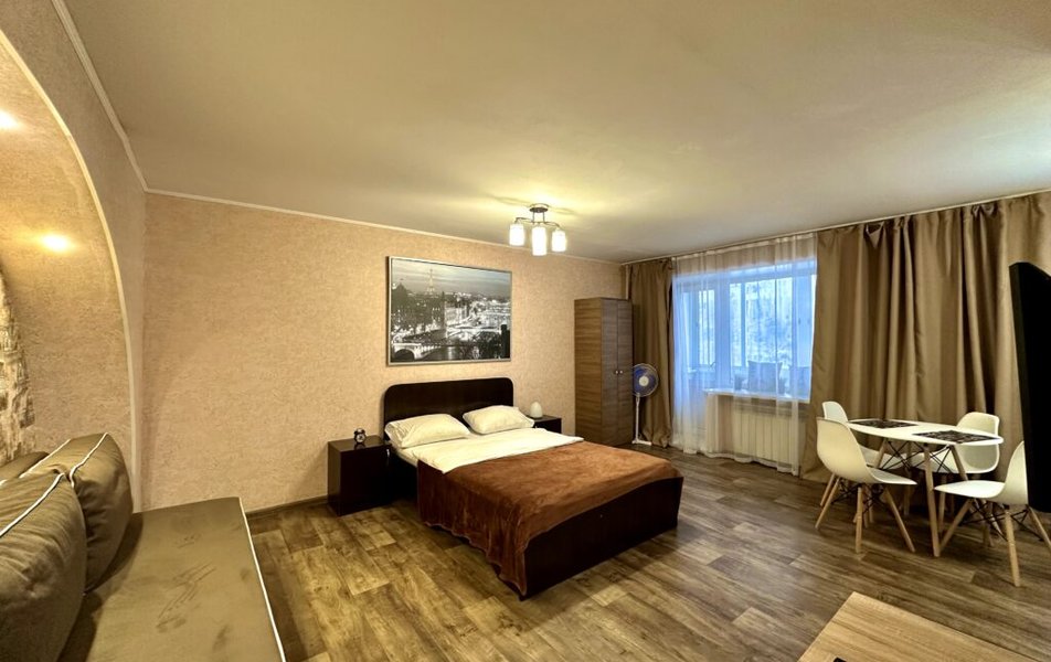 Внутреннее пространство апартаментов продумано для комфортного проживания компании до четырех человек. Для сна предусмотрены двуспальная кровать и раскладной диван. Гостям доступен телевизор с обширным выбором из 60 кабельных каналов и высокоскоростной интернет Wi-Fi. Кухонная зона оборудована всем необходимым для приготовления пищи: керамической варочной поверхностью, холодильником, микроволновой печью, электрочайником и полным комплектом посуды. Для удобства гостей имеются стиральная машина, утюг с гладильной доской. По запросу предоставляется вентилятор или обогреватель.