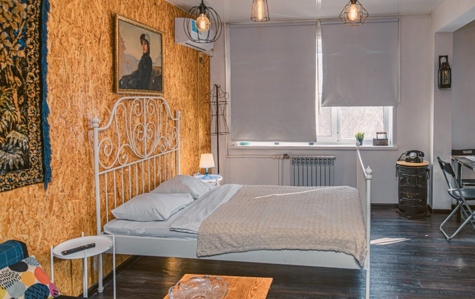Апартаменты «Калина на Мира 13» в Юрге выполнены в оригинальном стиле «Ретро Фьюжн» и расположены на втором этаже пятиэтажного дома. Рядом находятся автобусные остановки «ТЦ Гранд» и «Парк Кирова», обеспечивающие удобную транспортную доступность. В пешей доступности — супермаркеты «Ярче» и «Монетка», а также Кировский парк для прогулок. До Военного городка и железнодорожного вокзала Юрга-1 можно добраться за десять минут, что особенно удобно для гостей, прибывающих поездом.