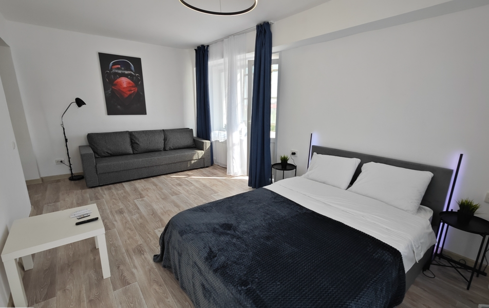 Внутреннее пространство рассчитано на комфортное размещение до четырёх человек. Здесь предусмотрены два спальных места: двуспальная кровать и раскладной диван. В распоряжении гостей телевизор с кабельным телевидением и высокоскоростной Wi-Fi. Кухонная зона оснащена варочной поверхностью, холодильником, микроволновой печью, электрочайником и полным набором посуды, что позволяет без труда готовить любимые блюда. Для бытовых нужд предусмотрены стиральная машина, утюг с гладильной доской, а также вентилятор или обогреватель по запросу для поддержания комфортной температуры.
