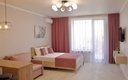 На территории в летний период работают подогреваемые взрослый и детский бассейны с пресной водой, оборудована детская игровая площадка, есть бар. В распоряжении гостей — просторные однокомнатные «Апартаменты», рассчитанные на трёх человек. В каждом номере — балкон или терраса, шкаф, вешалка, зеркало, стол, стулья, прикроватные тумбочки.