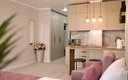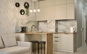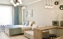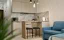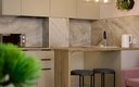 Кухня полностью оборудована для приготовления пищи: электрическая индукционная плита, холодильник, микроволновая печь, электрочайник, набор посуды. В апартаментах также есть стиральная машина, гладильная доска, утюг, сушилка для белья, кондиционер и телевизор.