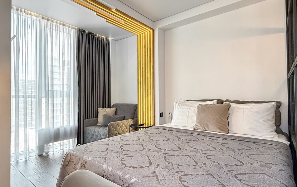 Апартаменты «Монако 24 Голубые Дали» расположены в Анапе на проспекте Голубые Дали, всего в нескольких минутах ходьбы от живописного городского пляжа, где мягкий песок сменяется галечными участками и создает идеальные условия для комфортного отдыха у моря. Гостям предлагаются стильные двухместные апартаменты категории «Студио Гранд Сапфир» с современной отделкой, функциональной зоной отдыха и полностью оборудованной кухней, где есть все необходимое для приготовления любимых блюд — от современной техники до полного набора посуды.