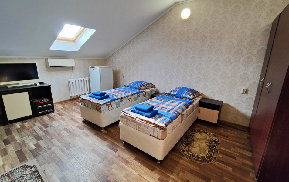 Трехэтажный корпус отеля включает в себя 15 номеров разной категории комфорта. В каждом есть индивидуальный санузел с душевой кабиной, кондиционер, телевизор и холодильник, в некоторых комнатах предусмотрены балконы. В гостинице для отдыхающих организована общая кухня, де можно самостоятельно приготовить еду, есть финская сауна и беспроводной интернет.