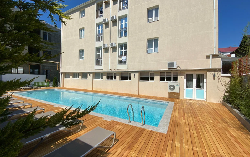 Гости могут проводить время у открытого подогреваемого бассейна с пресной водой. На территории также работает кафе, имеется библиотека и обустроена детская площадка. Для гостей на автомобиле предусмотрена охраняемая парковка. На всей территории гостевого дома и в номерах доступен бесплатный Wi-Fi.
