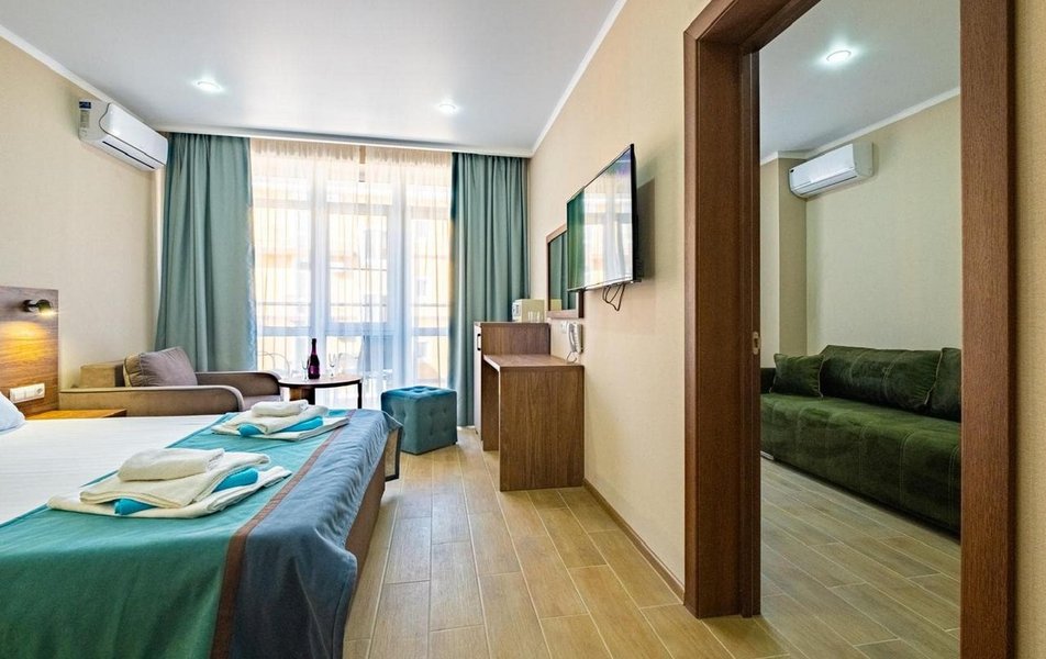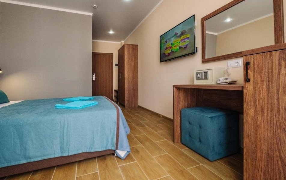 Современный трехэтажный корпус отеля находится на закрытой территории, расположенной среди малоэтажной коттеджной застройки. Гостей ожидают 57 комфортабельных номеров со стильным современным интерьером, выдержанном в пастельных и приглушенно бирюзовых оттенках. В каждом номере имеется собственный санузел с душем, телевизор, сплит-система, мини-холодильник.