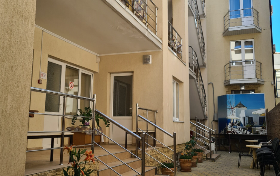 Территория гостевого дома — это тихий, обустроенный внутренний дворик, где царит спокойная, почти семейная атмосфера. Для детей предусмотрен каркасный бассейн, где можно весело провести время в жаркий день. На общей кухне, оборудованной всем необходимым, легко приготовить завтрак или ужин, что делает отдых экономичным и независимым от графика работы ресторанов. Связь с внешним миром не прерывается благодаря стабильному Wi-Fi, который доступен как в номерах, так и во дворе.