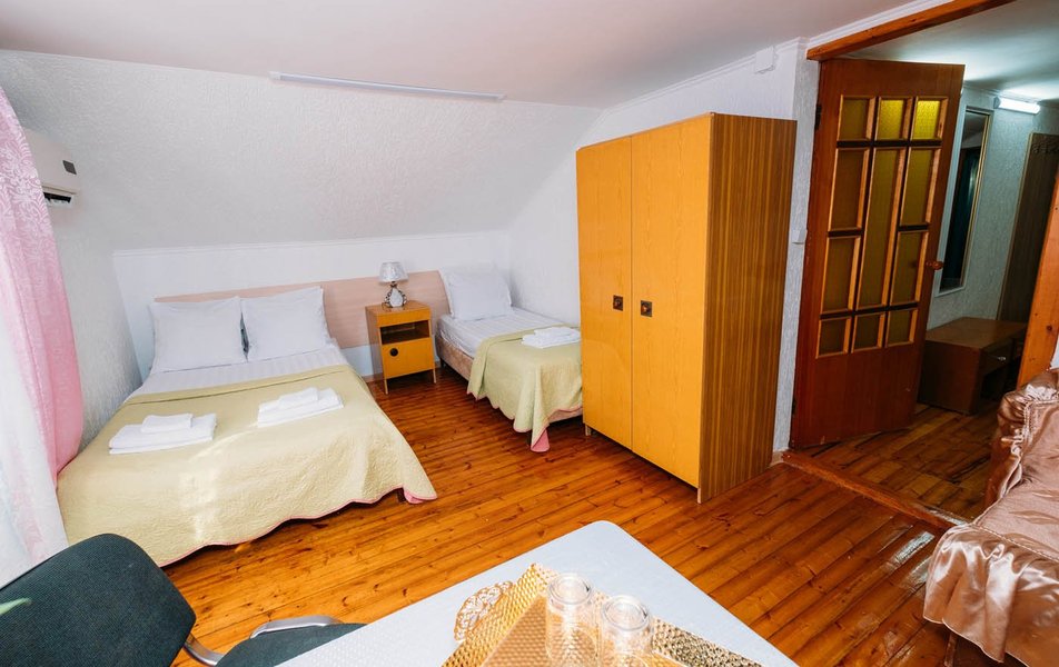 Трехэтажный корпус гостевого дома расположен на огороженной территории на Терновой улице. Для размещения гостям предлагаются комфортабельные и уютные номера, разной вместимости и категории комфорта. В каждом номере предусмотрена система кондиционирования, есть телевизор, электрочайник, доступна сеть wi-fi, в санузле – душ. Некоторые номера оснащены собственной мини-кухней и балконом.