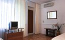 Предлагаемые номера представляют собой светлое однокомнатное пространство, рассчитанное на комфортное размещение до трёх гостей. Внутреннее пространство организовано с заботой об отдыхающих: двуспальная кровать и удобный диван обеспечивают качественный сон, а вместительный шкаф, вешалка, зеркало, стол и стулья создают ощущение домашнего порядка. Для создания идеального микроклимата установлен кондиционер. В вечернее время можно скоротать время за просмотром телевизора или воспользоваться беспроводным Wi-Fi на всей территории. В ванной комнате предусмотрен душ и базовые туалетные принадлежности.