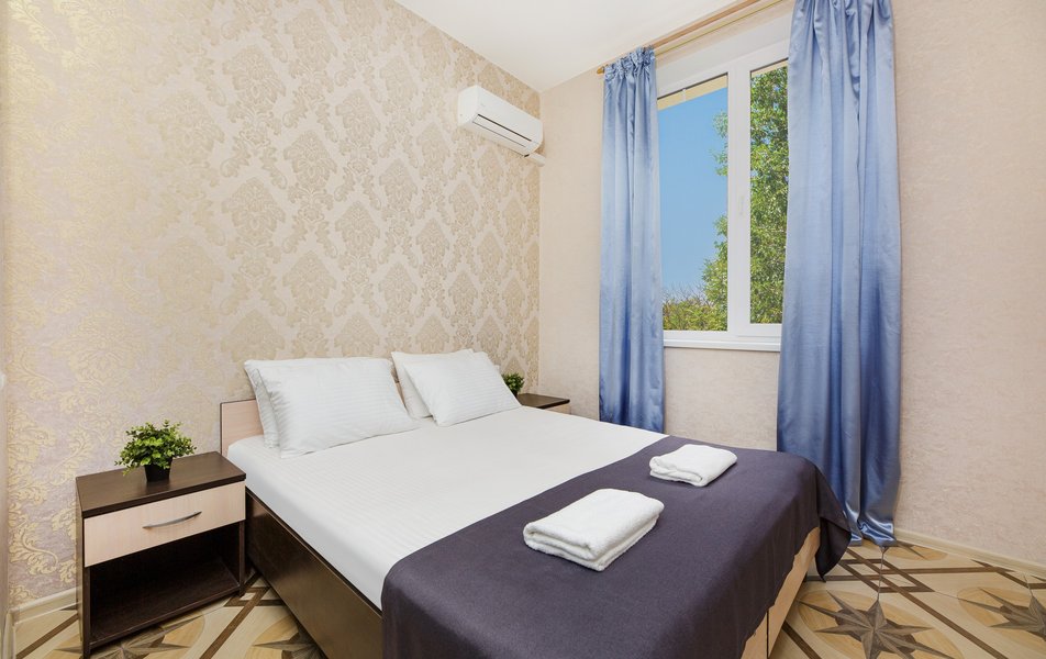 Отель разместился на небольшой закрытой территории на второй береговой линии и включает в себя 4 корпуса: главный трехэтажный корпус, 2 двухэтажных здания и один одноэтажный корпус. В распоряжении гостей комфортабельные номера. В каждом номере имеется санузел с душем или ванной, сплит-система, мини-холодильник, телевизор, доступна сеть wi-fi.