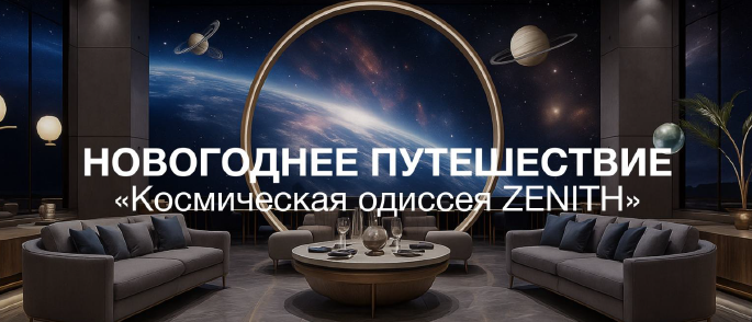 Забудьте о привычном празднике! 31 декабря мы запускаем самый амбициозный проект галактики — новогоднее путешествие «Космическая одиссея ZENITH». Пришло время надеть скафандр роскоши и отправиться в межзвездное приключение, где Вас ждут невероятные декорации, гастрономический вояж по Вселенной и шоу, которое перепишет все правила празднования. Ваш звездолет готов к взлету!