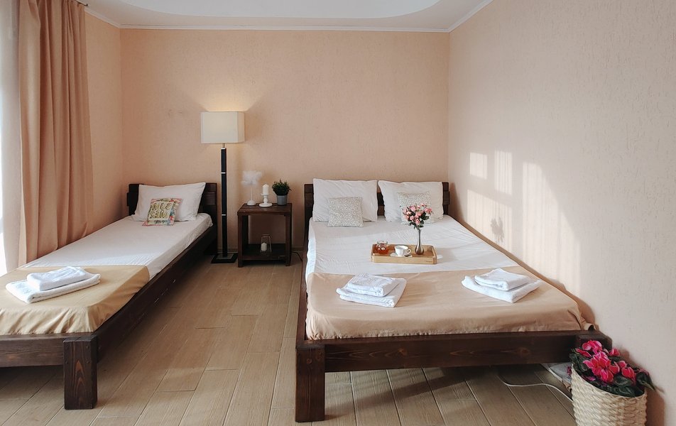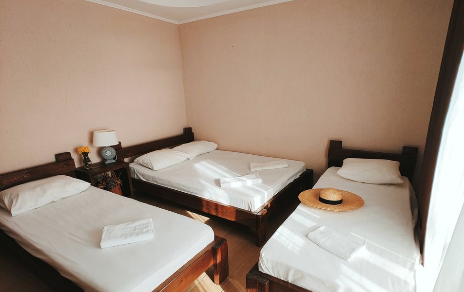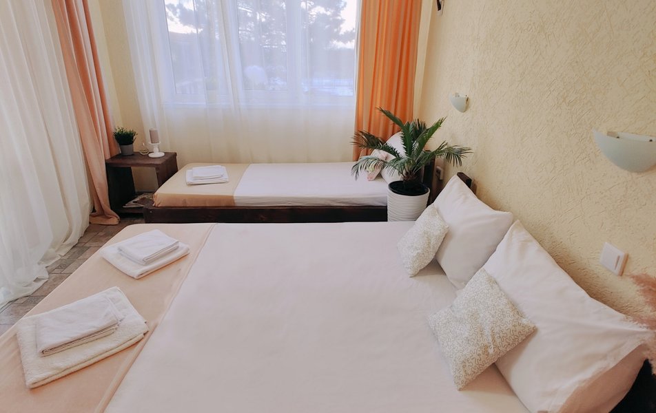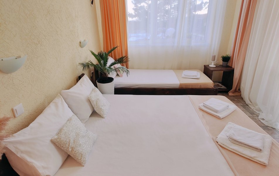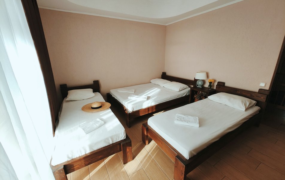 Атмосферу настоящего южного отпуска создают живописные детали: утренние прогулки дельфинов у берега, близость к знаменитой Бугазской косе и особый целебный воздух. А для тех, кто ищет ярких впечатлений, доступен активный отдых, например, аренда сапбордов. Отель предлагает разные варианты размещения — от стандартных номеров до просторного дома для большой компании. На охраняемой парковке можно оставить автомобиль, а заселиться или решить любой вопрос поможет круглосуточная стойка регистрации. «Благовещенка» — это место, где созданы все условия для того, чтобы каждый день отпуска был наполнен простыми радостями: солнцем, морем и спокойствием.