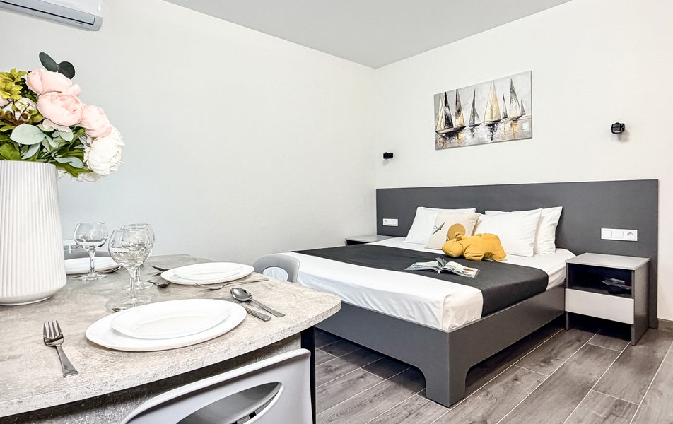 Просторные двухкомнатные варианты с террасой или видом на горы подходят для семей, а студии станут удобным выбором для пары или друзей. Во всех номерах есть беспроводной Wi-Fi, а кухонный уголок позволяет готовить любимые блюда.