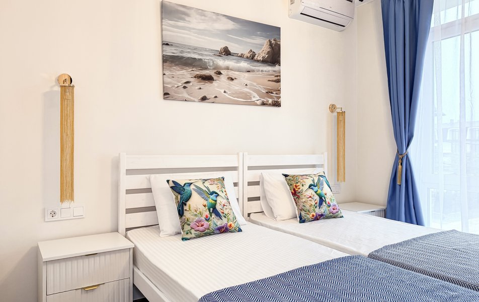 Гостевой дом «Апарт Июль» расположен в тихом районе Анапы на улице Видной, всего в 1,2 километра от песчаного городского пляжа. Это место подходит для тех, кто хочет совместить спокойный отдых вдали от шумных туристических улиц с быстрым доступом к морю и инфраструктуре курорта. Каждый из апартаментов здесь носит своё имя и отличается индивидуальным оформлением — от уютного «Фламинго» до современного «Хай-тек», что позволяет гостям выбрать пространство по своему вкусу.
